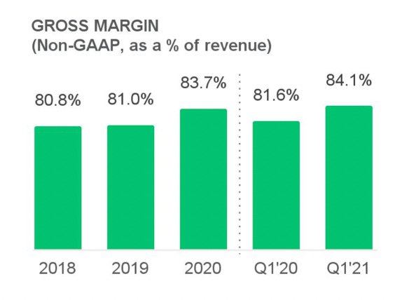 Perhaps Fiverr’s most impressive financial metric, however, is their gross margins. In 2020, Fiverr’s gross margins increased 260bps year-over-year to a whopping 83.7%. Incredibly, Fiverr improved this number in Q1 2021 by adding 20bps from Q4 2020, propelling their gross margin percentage a new quarterly high of 84.1%. At their current rate of improvement, gross margins of 85% for FY21 is not out of the question.
