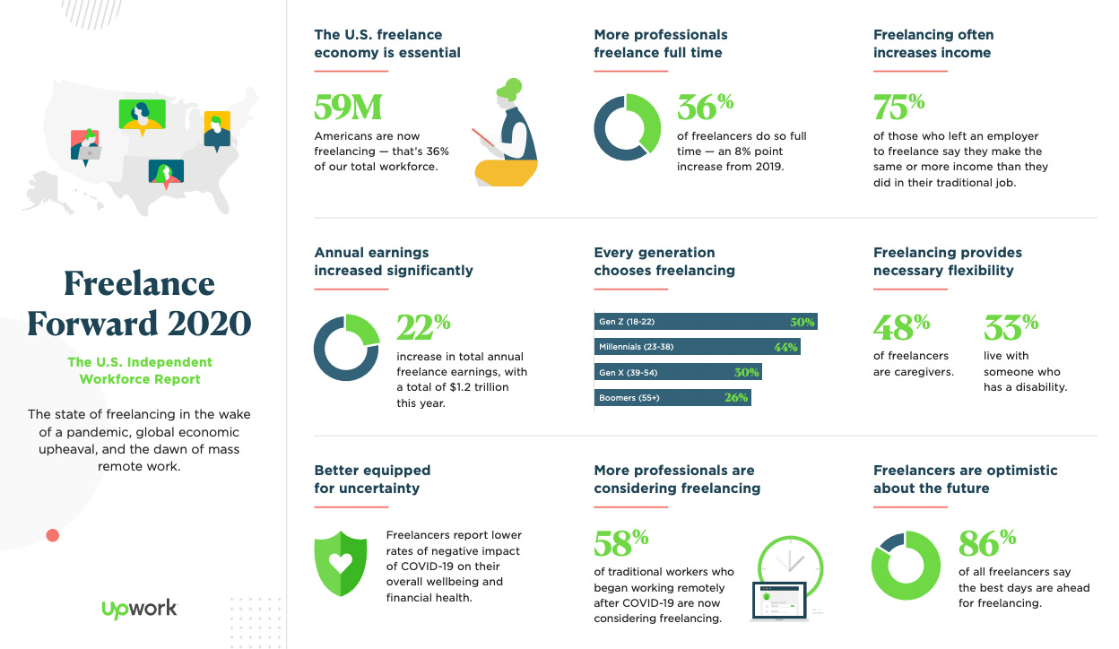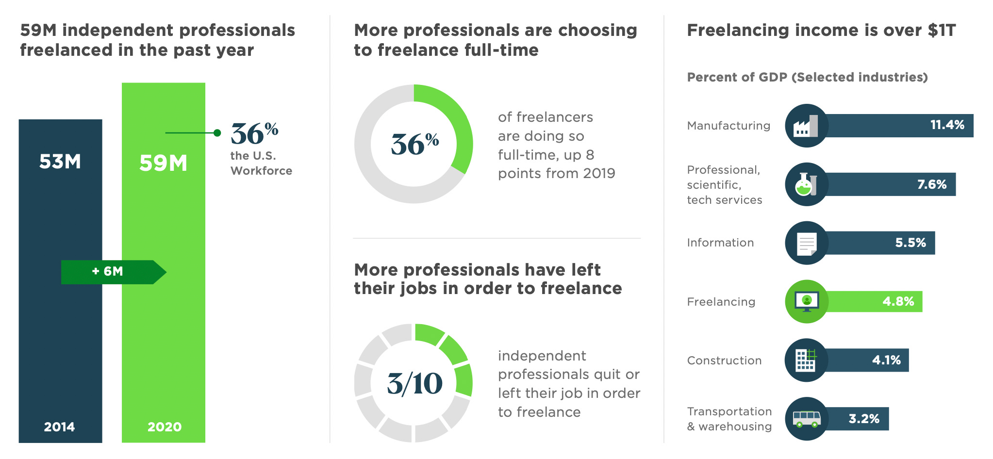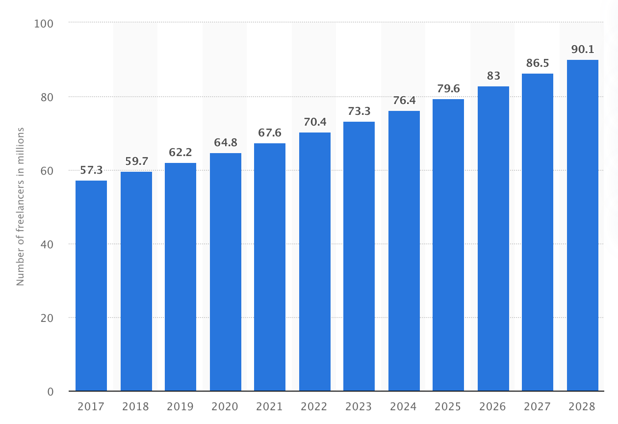 The number of freelancers in the United States is projected to reach over 86M by 2027, which would equate to roughly half of the U.S. workforce.