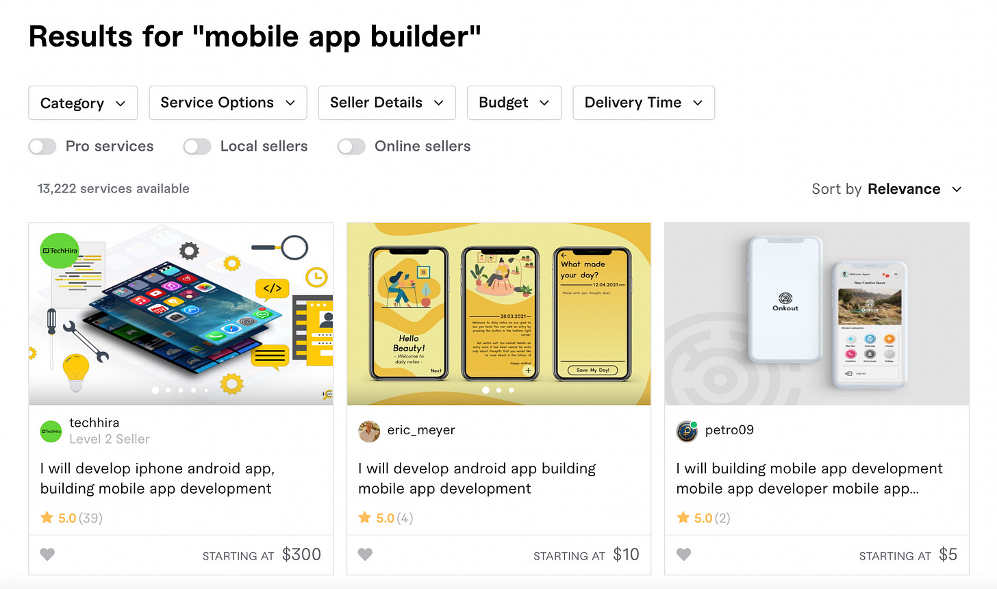 Those in need of freelance services may go to Fiverr’s website, search keywords for the job they need completed, and will instantly be shown a catalog of freelancers complete with filters available to narrow down search results.