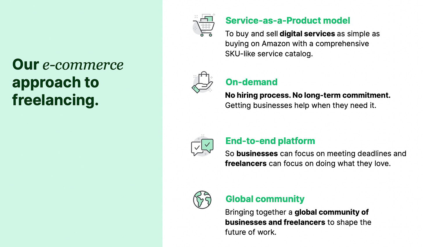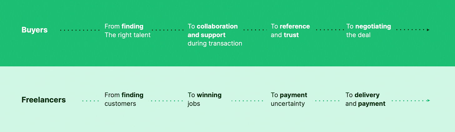 This effectively removes the high friction process that comes with traditional freelancing, as depicted in the graphic below.