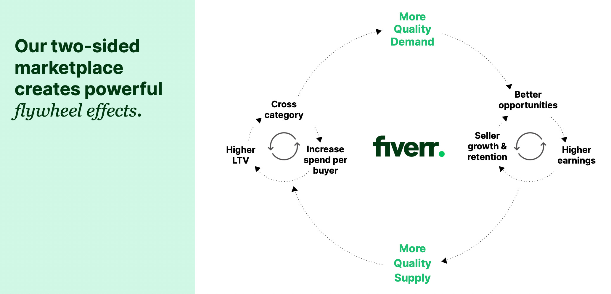 These high-trust transactions provide immeasurable value to the Fiverr ecosystem that create the “powerful flywheel effects” that are seen in the graphic below.