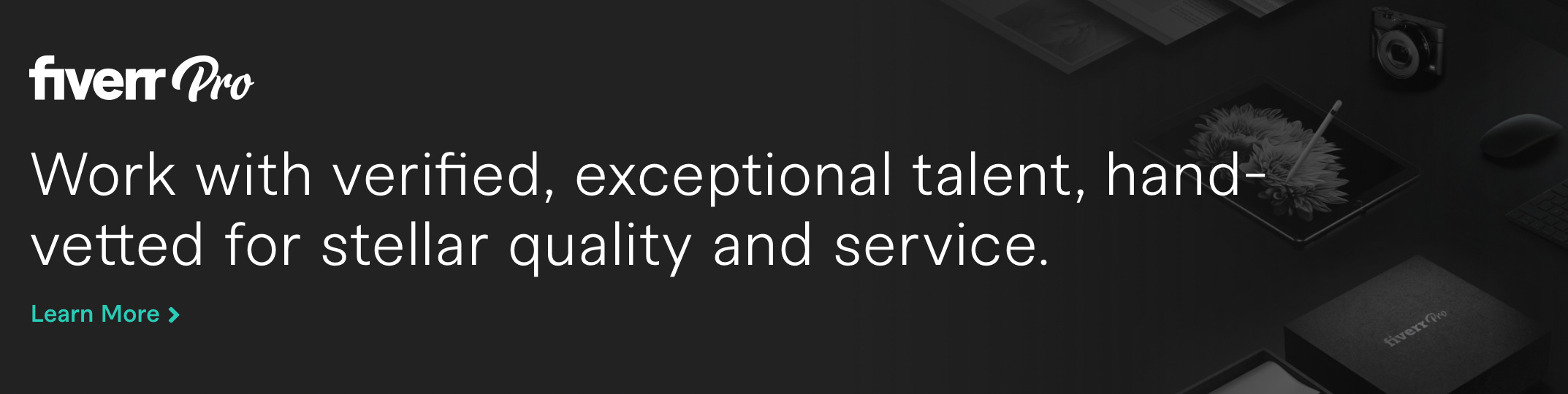 In addition to ratings and levels, sellers that go above and beyond expectations may be selected as a Pro Verified Seller — sellers hand-picked by Fiverr for continuously exceeding all necessary requirements and leading to superior buyer satisfaction.